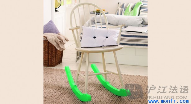 Une fois que la peinture est complètement sèche, placez la chaise sur les pieds peints et marquez la position des jambes avec le crayon.油漆完全干燥后,将椅子放在摇摇椅椅脚上,用铅笔标好椅子四脚所在位置。