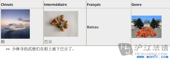 Deuxième étape : création d’une image forte (concrète) dans votre tête par association : le son du mot étranger avec le sens de celui-ci dans votre langue.第二步:通过联想,将外语生词与一张具体的图片联系起来:用自己的母语标注生词的读音,并写出母语读音的具体意思。