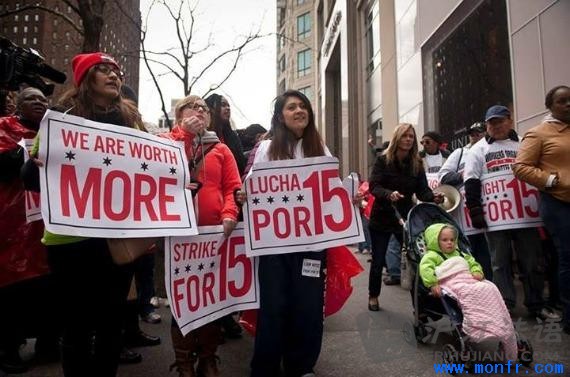 快餐业开始罢工:美国35座城市的连锁快餐店员工为了要求更好的待遇而罢工。目前在美国共有300多万人就职于快餐业。