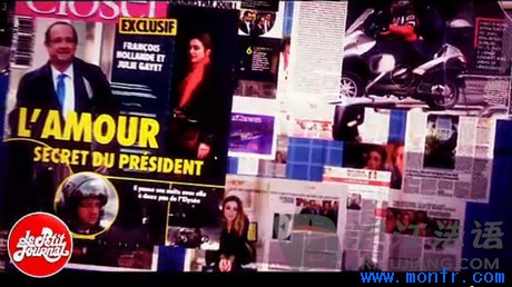 《LePetitJournal》是Canalplus旗下著名脱口秀节目,主业就是”吐槽“、”吐槽“、”吐槽“。全方面,无差别。相信可能还有人记得去年奥朗德访华期间它对挥国旗和大妈面具等的经典吐槽吧。当然这次槽点本来就颇多的总统也难逃毒舌。由喜剧演员Éric Metzger和Quentin Margot饰演了奥朗德绯闻女友Julie Gayet的新闻官,展现了绯闻前后Gayet的工作状态,生动了诠释什么叫”一夜爆红“。