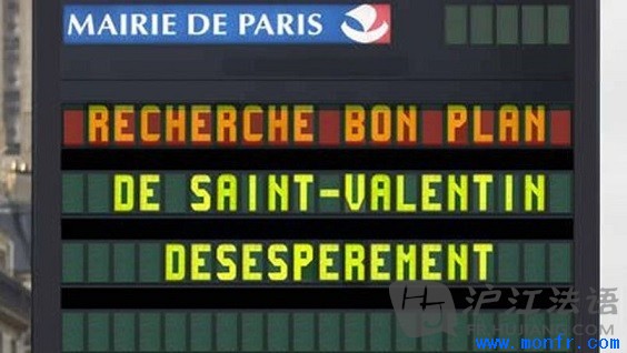 • L'amour à l'affiche. Ce 14 février encore, la Mairie de Paris met ses 170 panneaux lumineux à disposition des amoureux. Les plus belles déclarations - en 160 caractères maximum - y seront affichées gratuitement pendant toute la journée, aux quatre coins de la capitale. À vos plumes! Inscription avant le 9 février minuit, sur paris.fr爱的宣言。今年情人节,巴黎市政府同样提供170块荧光屏幕供情侣使用。最动人的爱的宣言(最多160个字)将在情人节当天全天在全市亮起,而且完全免费。快点写下您的爱的宣言吧!活动截止日期是2月9日午夜,活动网址paris.fr。