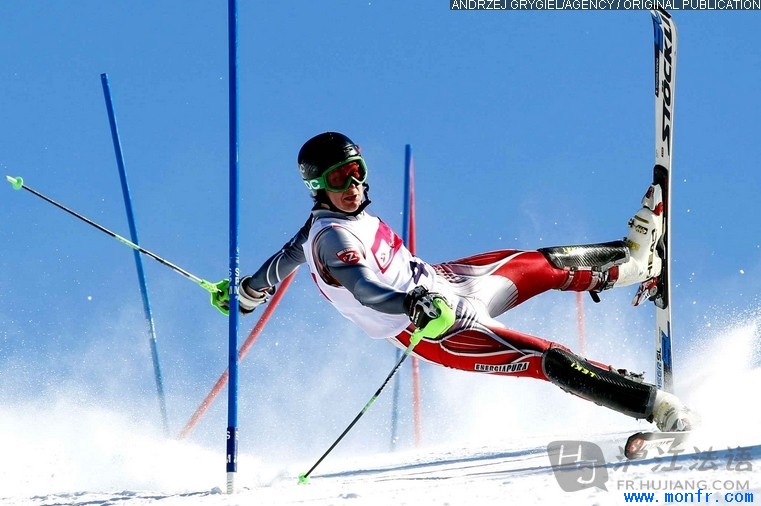 24 mars 2013 à Szczyrk en Pologne. Un skieur pendant une compétition de slalom.2013年3月24日,波兰斯兹亚鲁克。一名滑雪运动员在障碍滑雪赛中。