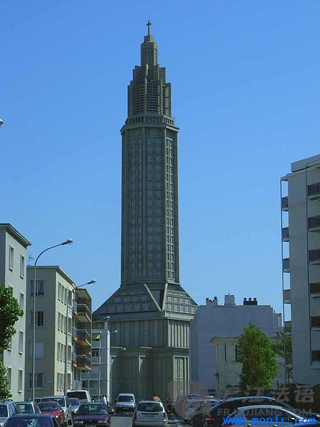 Le centre-ville reconstruit du Havre (1945 - 1964) est l'œuvre de l'architecte Auguste Perret (12 février 1874 - 25 février 1954) qui se vit confier par le Ministère de la Reconstruction et de l'Urbanisme, la réédification de la ville du Havre après sa destruction à la fin de la Seconde Guerre mondiale. Le site est inscrit sur la liste du patrimoine mondial de l'Humanité par l'UNESCO en 2005.勒阿弗尔新城是建筑师,奥古斯特·佩雷的杰作。勒阿弗尔老城毁于第二次世界大战的战火,奥古斯特·佩雷在城市规划和振兴部的支持下主持重建这座城市。2005年勒阿弗尔新城被联合国教科文组织收入世界人文遗产名录。