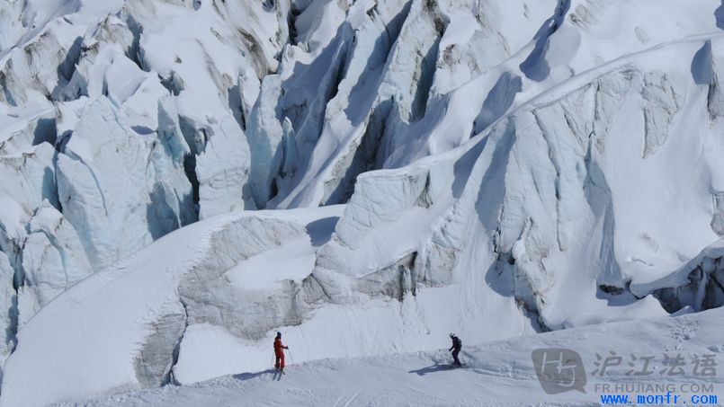 Jusqu'au 4 mai aux Grands-Montets, entre 3200 m et 1900 m d'altitude, avec retour dans la vallée en téléphérique. À cette époque de l'année, il ne reste plus que quelques pistes, parmi lesquelles le «Point de vue», 3 km de pente raide, vue plongeante sur le glacier d'Argentière.在Grands-Montets峰1900至2300米的海拔上,Chamonix雪场开放至5月4日,滑雪结束后你可以乘坐缆车返回营地。在这个季节,仅有几条雪道还在营运,其中在长约3公里的Point de vue速滑雪道上,你可以观赏Argentière冰川的美景。