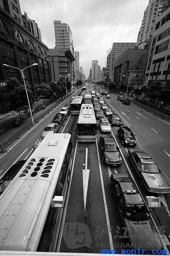 La circulation était aussi chargée ce matin là que n'importe quel matin. Chaque place à son véhicule et chaque véhicule n'importe où. Un taxi passe et klaxone à outrance un piéton qui traverse en dépit du bon sens, un autre taxi, puis une autre voiture qui klaxone, encore et encore, parce qu'une autre voiture est devant, derrière, parce qu'un vélo passe, un piétion traverse, parce que rien du tout ou juste pas habitude. C'est l'incessant concert des klaxon de la Chine.那天早上,交通依然拥挤,一如往常。每个地方都有车,而每辆车也停在任意的地点。一辆出租车经过,拼命地朝走地好好的行人摁着喇叭,另一辆出租车,又一辆汽车也摁着喇叭,一次又一次,只是因为前面或后面有车,因为有辆自行车通过,有位行人过马路,因为没什么原因,只是出于习惯。这就是中国无休止的汽车喇叭音乐会。