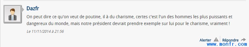 我们可以说我们希望看到的普京,他具有领袖人物感人的超凡魅力,诚然,他是世界上最强大并且最危险的人物之一,但是我们的总统真正地为领袖人物感人的超凡魅力做出了榜样!