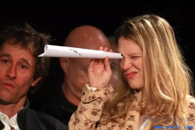 Pour compenser ses rôles un peu austères, Léa s'amuse lors des projections. (Lyon, 4 octobre 2010.)由于角色有些沉重,蕾雅•赛杜在放映时调节气氛。(里昂,2010年10月4日)