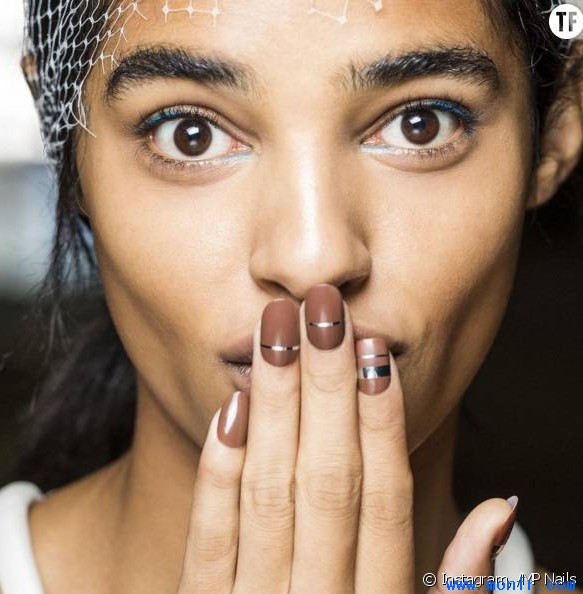 Les créateurs proposent ainsi des lignes parfaitement géométriques sur des ongles nus ou colorés mais toujours dans la discrétion. Ne reste plus qu'à trouver la technique pour reproduire ces sobres parallèles.美甲师还推荐了完美的几何线条,在裸甲或彩色甲油上都可以,但一定要简单朴素。现在只需要找到再现这些极简的平行线的技巧了。