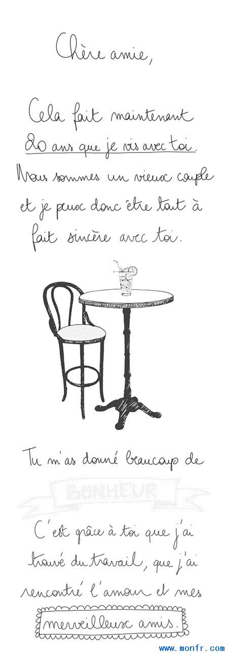 在巴黎生活了20年的插画师写了一封给巴黎的情书:巴黎,我会继续爱你,但是,我也该离开你了,哪怕伤感千般渗心入肺。不过我会常常回来看看你的,你在我心中无可替代。