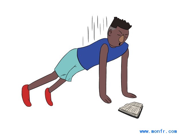 动作要领:面对着书采取平板支撑的姿势。保持这个姿势直到阅读完整页。当你阅读一本好书的时候,时间会过的很快。