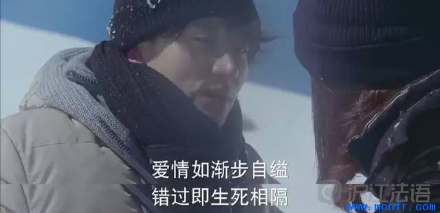 来到瓦莱山后,程家阳和乔菲遭遇雪崩发生意外,程家阳晕倒。心焦的乔菲心里浮现出这句话:在爱情的道路上,最大的过错,是错过。