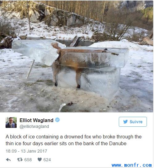 声明:沪江网高度重视知识产权保护,发现本网站发布的信息包含有侵犯其著作权的链接内容时,请联系我们,我们将做相应处理。本内容法语部分转载自法国网站yahoo,中文部分由沪江法语(http://fr.hujiang.com/)Riche木头羊原创翻译,转载请指明出处,欢迎批评指正。原文网址:https://fr.news.yahoo.com/renard-gel%C3%A9-apr%C3%A8s-%C3%AAtre-tomb%C3%A9-134800227.html