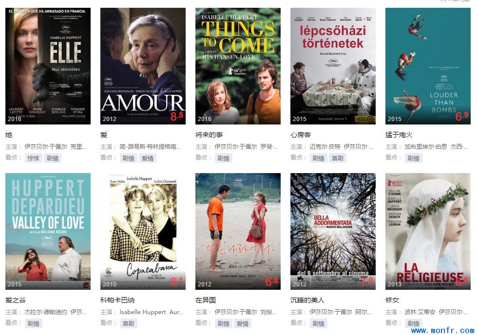 法国最伟大的十位女星之二——伊莎贝尔·于佩尔