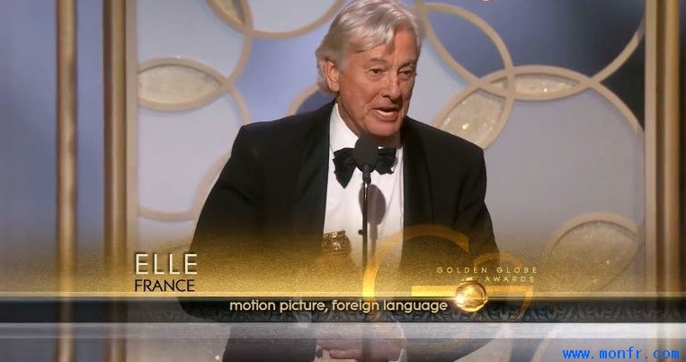 Le réalisateur du film, le Néerlandais Paul Verhoeven, a quant à lui été doublement récompensé, puisque Elle a également reçu le prix du meilleur film en langue étrangère face à un autre film francophone : Divines de Houda Benyamina. Le réalisateur a clamé (trois fois) son amour pour l'actrice : « I love you, I love you, I love you », lui a-t-il lancé en recevant son prix.荷兰籍导演保罗·范霍文可以说是双喜临门,除了最佳女演员以外,它还击败另一影片(由侯达·本亚闵纳导演的《女神们》)获得了最佳外语片奖。在获得该奖项以后,他也3次向伊莎贝尔表示感谢“我爱你,我爱你,我爱你!”