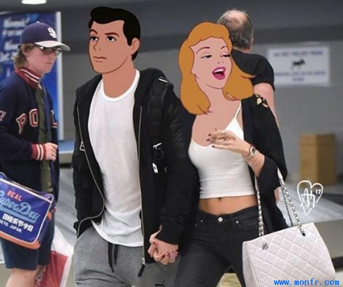 Cendrillon et le Prince Charmant évitant les paparazzis:灰姑娘和白马王子正在躲避们的拍摄: