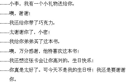 Avoir ; un ; petit ; cadeau ; pour ; très ; gentil ; apporter ; chocolat ; beaucoup ; acheter ; livre ; frère ; mille ; dix mille ; fois ; adorer ; penser ; carte ; faire plaisir ; joyeux ; anniversaire ; vraiment ; mais ; aujourd'hui ; quant-même.